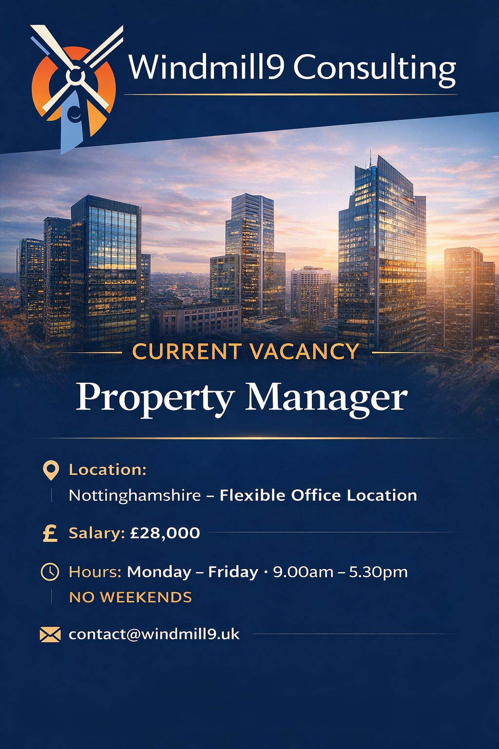 At Windmill9 Consulting, we specialise in connecting talented professionals with outstanding opportunities in the property sector. If this sounds like your next challenge, get in touch with us today.
