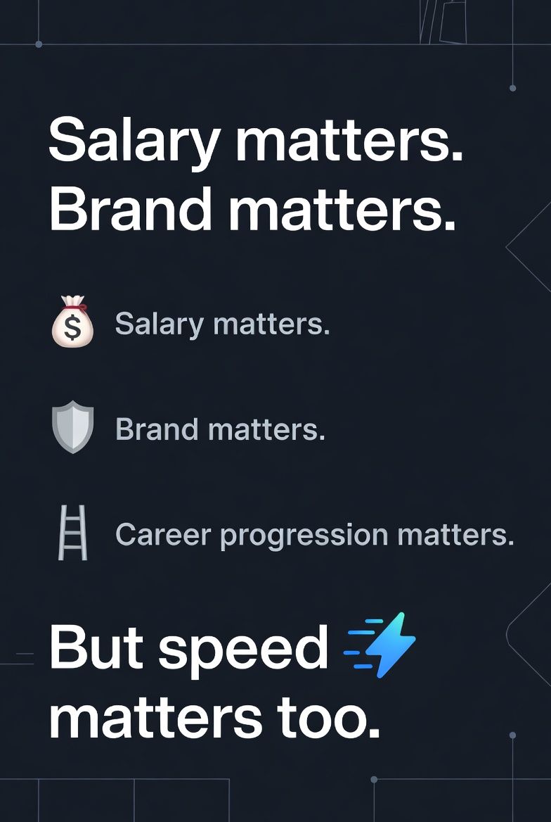 Salary matters. Brand matters. Career progression matters. But speed matters too.